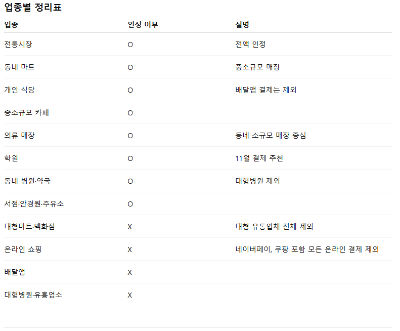 - 필수 확인: 인정 업종(골목상권) 중심 결제