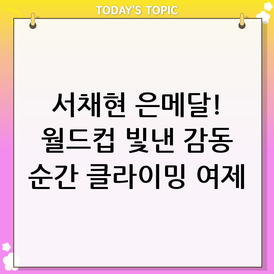 서채현 선수의 은메달 획득은 한국 스포츠클라이밍의 밝은 미래를 보여주는 쾌거입니다. 그녀의 끊임없는 노력과 도전 정신은 많은 이들에게 영감을 주고 있으며, 앞으로 그녀가 보여줄 활약에 대한 기대감을 높이고 있습니다.